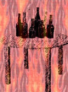 by the fire. It had what appeared like beer bottles on it. These